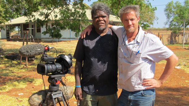 Co-Director Stewart Carter and Sound Recordist Maxwell Japanangka. Co-Directors Stewart Carter and Wanta Jampijinpa.
